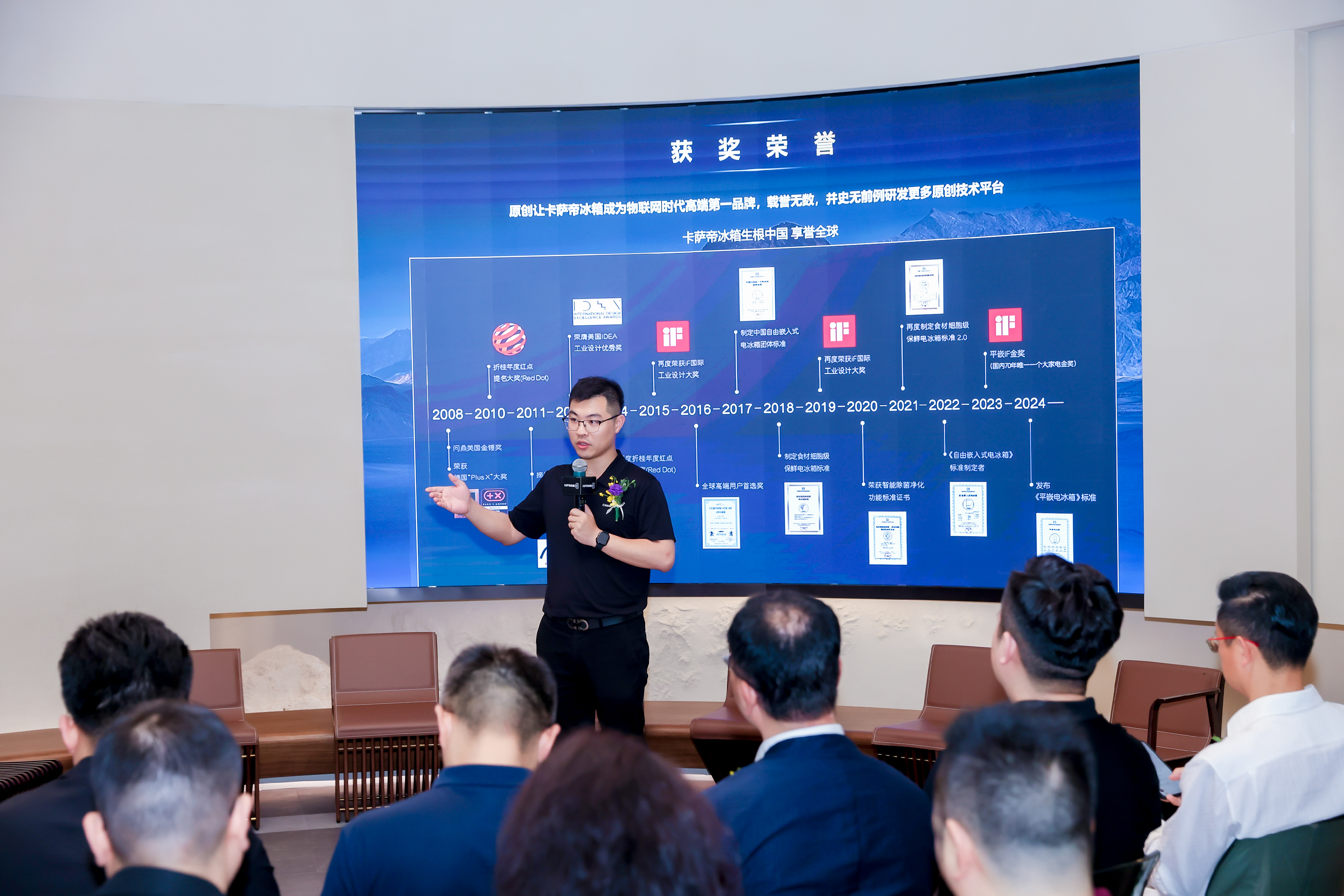 卡萨帝冰箱前置渠道总经理贺腾飞先生从三个方面与大家分享卡萨帝冰箱的品牌价值,揭开深圳湾C-HOUSE的独特之处。产品太不一样。卡萨帝冰箱始终以科技创新驱动行业发展,不仅制定了多项行业标准,更通过持续的技术突破,为用户带来前所未有的使用体验。设计太不一样。C-HOUSE巧妙的将“自然美学”、“空间美学”和“数字美学”融入其中,将卡萨帝冰箱的艺术价值提升到了一个新的高度。体验太不一样。在这里,用户可以亲身感受卡萨帝冰箱带来的智能便捷、健康保鲜以及艺术设计的完美融合,卡萨帝的服务团队也会全程陪伴,确保每位用户都能获得量身定制的解决方案。同时C-HOUSE还承载着卡萨帝品牌生态体系的升级使命,是 “卡萨帝冰箱深圳C-studio设计师俱乐部”的品牌化落地平台。